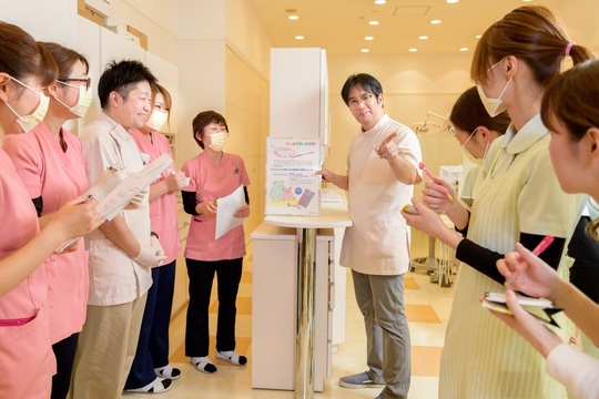 スタッフの仲がよく、歯科医師も、歯科衛生士も、歯科助手も、お互いの仕事を認め合い、協力し合って診療を進めています。